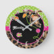 Monkey & Flowers Pink Green Safari Chic Customized Round Clock
