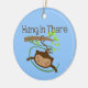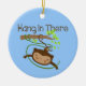 A cute monkey swings from a branch by his tail and brown text reads Hang In There, a cute monkey design great for kids and adults who love animals, especially monkeys! Monkey Hang in There T-shirts, mugs, bodysuits, blankets, bibs, burp cloths, magnets, stickers, bags, cards, stickers, key chains, keepsakes, and much more!