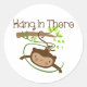 A cute monkey swings from a branch by his tail and brown text reads Hang In There, a cute monkey design great for kids and adults who love animals, especially monkeys! Monkey Hang in There T-shirts, mugs, bodysuits, blankets, bibs, burp cloths, magnets, stickers, bags, cards, stickers, key chains, keepsakes, and much more!