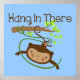 A cute monkey swings from a branch by his tail and brown text reads Hang In There, a cute monkey design great for kids and adults who love animals, especially monkeys! Monkey Hang in There T-shirts, mugs, bodysuits, blankets, bibs, burp cloths, magnets, stickers, bags, cards, stickers, key chains, keepsakes, and much more!
