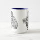 Drawn in pen and ink and a distinctive crosshatch style, this design features a plaintive spider monkey holding a bouquet of paper flowers. This illustration is replicated on both sides of the mug, and supported by a modern two-tone design. Illustration and design created by Pacific Northwest artist (and animal lover), Diana Crites of Woebegone Art.