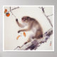 A Japanese macaque monkey sitting on an old persimmon tree, pulling the branch to get at the fruit. The monkey’s face is unique and warm. Color on silk by Japanese artist Hashimoto Kansetsu, simply entitled, "Monkey".