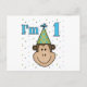 Monkey in Party Hat 1st Birthday Tshirts Invitation Postcard