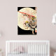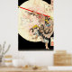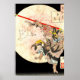 Son Goku, sometimes known as the Monkey King, holding a spiked scepter and glaring at the Moon Rabbit, who apparently lives on the moon. A page of the series, Tsuki Hyaku Shi (100 Aspects of the Moon). From an original 19th century (1887) woodcut, Tamausagi Songoku (Songoku and Jewel Hare), by Taiso Yoshitoshi. All Rights Reserved © 2012 padre art