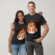 My 11 yo wore adult XL (5’7” 165#). The 8yo is small framed. She wore adult small and tied it in the back. Grandma wore adult large with long sleeve shirt underneath. Tall girl adult medium. Dark haired male adult large. Good quality dark Heather gray, Gildan brand shirt. -it was next up from basic choice and cost about $20 per shirt. Not too thick or thin. Washed and dried well, no major shrinkage. Not see-through. Can wear a bra under it fine. Screen print is just as shown and well done, front and back.