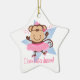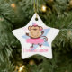 Our adorable little monkey ballerina keepsake ornament is perfect for any little girl (or big girl) who loves to dance. Cute little girl monkey with crown and star wand wearing a pink tutu and ballet slippers. A blue star behind her tells the world that she's the star of the show. Text says I LOVE TUTU DANCE! Customizable background color. Add your own message. Great gift for big and little dancers. Also on baby, kids and adult T-shirts, tote bags, stickers, buttons and more! PinkInkArt original!