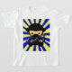 Cartoon monkey dressed as a ninja with a bright yellow and blue background. sgb01