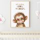 Ignite your child's sense of adventure and curiosity with this delightful nursery poster featuring an adorable monkey. The poster showcases a whimsical illustration of the monkey, radiating playful energy, boundless curiosity, and infectious enthusiasm. Accompanied by the empowering phrase "I am playful, curious, and energetic," this artwork serves as a joyful reminder of the qualities that make childhood so special. Hang this poster in the nursery, and let its presence inspire your child's imagination, encouraging them to embrace their playful spirit, embrace curiosity, and embark on exciting explorations. With its charming design and uplifting message, this monkey nursery poster creates a vibrant and stimulating environment, fostering a love for learning, a zest for life, and an appreciation for the joyous moments that childhood brings.