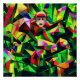 A.I. created interpretation of a Monkey face emerges amidst the angular patterns of the surrounding canopy of foliage as it observes its environment