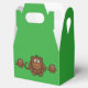 Party favor box shown in green in a gable style with a cute cartoon monkey. Customize this item and add your own text or buy as is and add some pretty ribbon.