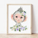 Monkey, Safari, Purple Flowers, Gender Neutral Poster