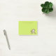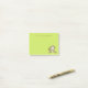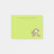 A small sized set of sticky notes with a cute illustration of a brown monkey sitting down. She has pink blushing cheeks for additional kawaii cuteness. texture. Fun and whimsical design. Personalize with a name or other text. Set on a lime green background.