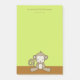 A large sized set of sticky notes with a cute illustration of a brown monkey sitting down. She has pink blushing cheeks for additional kawaii cuteness. texture. Fun and whimsical design. Personalize with a name or other text. Set on a lime green background. Great for teachers and daycare workers.
