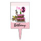 Monkey With Cake 3rd Birthday cake topper features a cute monkey digging into a chocolate with pink icing birthday cake and text that reads "I'm 3"! You can add the birthday girl's name easily before ordering.
