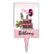 Monkey With Cake 5th Birthday cake topper features a cute monkey digging into a chocolate with pink icing birthday cake and text that reads "I'm 5"! You can add the birthday girl's name easily before ordering.
