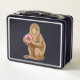 This is a standard metal lunchbox that appears to work just fine. We designed this box ourselves with an uploaded photo and custom text on the front and back. It looks absolutely beautiful except the front of the lunchbox is not centered like it shows in the photo. The print borders don't align with the inset flat part of the box where the preview photo online showed it perfectly centered in there. The back looks nice and centered though.