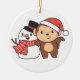 Monkey With Snowman In Winter For Christmas Cerami Ceramic Ornament
