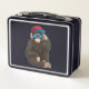 This is a standard metal lunchbox that appears to work just fine. We designed this box ourselves with an uploaded photo and custom text on the front and back. It looks absolutely beautiful except the front of the lunchbox is not centered like it shows in the photo. The print borders don't align with the inset flat part of the box where the preview photo online showed it perfectly centered in there. The back looks nice and centered though.