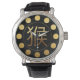 Golden Monkey symbol with an embossed digital effect in the center of a black frame with hollowed-out circles showing the golden background for hours. Design on man vintage style watch. Matching charm bracelet, Baggu bag, reusable bag and more... Perfect for Chinese New Year of The Monkey 2028 or Birthday (people born in Monkey year). For people born in 2016 you can see my other gallery: www.zazzle.com/2016_year_of_monkey*. ---------------------- "The Monkey (猴) is the ninth of the 12-year cycle of animals which appear in the Chinese zodiac related to the Chinese calendar. The Year of the Monkey is associated with the Earthly Branch symbol 申. " - Wikipedia 8 February 2016 – 27 January 2017: Fire Monkey Persons born within these date ranges can be said to have been born in the Year of the Monkey, while also bearing its governing elemental sign (that is, Metal) = 2 February 1908 – 21 January 1909: Earth Monkey 20 February 1920 – 7 February 1921: Metal Monkey 6 February 1932 – 25 January 1933: Water Monkey 25 January 1944 – 12 February 1945: Wood Monkey 12 February 1956 – 30 January 1957: Fire Monkey 30 January 1968 – 16 February 1969: Earth Monkey 16 February 1980 – 4 February 1981: Metal Monkey 4 February 1992 – 22 January 1993: Water Monkey 22 January 2004 – 8 February 2005: Wood Monkey 8 February 2016 – 27 January 2017: Fire Monkey 26 January 2028 – 12 February 2029: Earth Monkey 12 February 2040 – 31 January 2041: Metal Monkey 1 February 2052 – 18 February 2053: Water Monkey ------- WIKIPEDIA