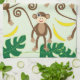 Cute cartoon monkeys hanging out and eating bananas