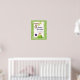 A personalized happy birthday poster with a cute little monkey swinging from a tree up above and one is peeking out from behind a bush down below. Cute and whimsical safari design. The background is a pattern of tropical leaves on an olive green backdrop. Text says happy Birthday with a personalized name and age.