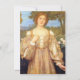 This design features a painting by the British artist Edward Robert Hughes (1851–1914). It shows Monna Giovanna, who is a female character from the Medieval Italian author Giovanni Boccaccio's Decameron. She was widely considered to be one of the most beautiful and charming woman that had ever lived in Florence. She is shown here in a beautiful garden: there are flowers and trees behind her, including a row of pink roses. She is wearing an elegant dress and necklace. Her hair is red, like her lips, and her eyes are blue. She is, without doubt, a great beauty.