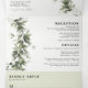 An elegant and minimalist design featuring eucalyptus and greenery branches illustrations on each panel. This all in one invitation would save you money, no need to include RSVP envelopes, your guests will cut out the last panel and mail it back to you as a postcard.