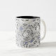 A striking study in texture and tone, Framed Flowers features swirling floral-inspired forms layered in rich black contour lines against a muted lavender-grey backdrop. The intricate, topographic patterning draws the eye inward, revealing rhythm and movement within each bloom-like shape. Framed by a dynamic chevron border, this piece balances organic flow with geometric strength, creating a powerful visual statement.
