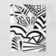 A black and white abstract pattern design with an art deco style. A stylish design with a retro look. This image has gray lines with black and white shapes.