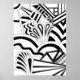 A black and white abstract pattern design with an art deco style. A stylish design with a retro look. This image has gray lines with black and white shapes.