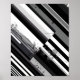 The design is composed of bold diagonal lines in black, white, and various shades of gray. The stripes vary in thickness, creating rhythm and visual depth. Scattered paint splatters and textured overlays enhance the raw, edgy character of the artwork. The interplay of geometric order with spontaneous splashes gives the composition a modern, urban, and industrial aesthetic. The overall style feels dynamic and powerful, perfectly balancing structure with expressive artistic elements.