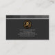 A monochromatic grey stripe box design accentuated by a white line near the top of the card. Just below this is a gold chauffeur's logo you can use followed by your prestigious name and a slogan caption near the base. You can change the caption to suit your service needs.