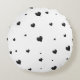 This design features a playful scattering of black hearts on a crisp white background, creating a charming and minimalist aesthetic. Each heart varies slightly in size, giving the pattern a dynamic and lively feel. Perfect for adding a touch of modern romance to any space, this printed Brushed Polyester Round throw pillow brings both style and comfort to your home decor. Ideal for bedrooms, living rooms, or as a thoughtful gift, this pillow's design effortlessly blends simplicity with a touch of whimsy. #jeetscollections
