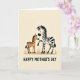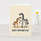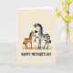 Designed with a soft cream background, the illustration centers on two striped equine figures standing close together in an open, quiet setting. The larger adult, drawn in classic black-and-white stripes, leans protectively toward the smaller companion with a calm, attentive look that suggests affection. The younger one has a warm fawn-toned coat with darker stripes and tilts its head upward, as if sharing a tender, trusting glance ❤️. Minimal earthy colors and simple shapes keep the focus on their closeness, while gentle shading suggests soft light across their coats. One front leg of the adult lifts slightly, hinting at a careful step or a gentle nudge toward the little one 🌼. Near the bottom, the text “HAPPY MOTHER’S DAY” sits centered in rounded uppercase letters, printed in a dark tone that stands out clearly against the pale background. A few small strokes of dry grass appear at their feet, lightly grounding the pair on the plain, open ground.