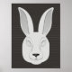 A stylistic drawing focusing on a rabbit face upon a basic background.