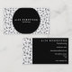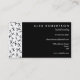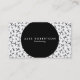 A professional design featuring a simple pattern of black scissors on a white background with a large black circle in the middle for your name and profession. This would be suitable for anyone who works with scissors such as a hairdresser, barber, tailor or dressmaker.