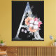 Monogram A with Floral blues on a black background Canvas Art