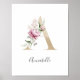 Monogram A Pink White Floral Gold Letter Nursery Poster