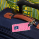 Travel in style with this monogram luggage tag featuring an abstract pink line strokes pattern with a blue center on the front and a matching blue back side.