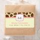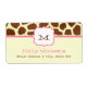 A monogram address label sticker featuring a background of giraffe print. Pink trim. Personalize with your initial inside frame at top center. Personalize the text at bottom. Look for other giraffe print products at Jill's Paperie.