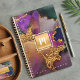 A sparkly, faux gold foil rectangle with a script typography monogram initial overlays a rich, gold veined, navy blue, hunter green and purple marble watercolor background on this chic, elegant, trendy, custom name yearly planner. Personalize with your initial and year. This planner comes in 2 sizes: small (5.5”x8.5”) and medium (8.5”x11”). Makes a fun and stylish statement every time you use it. A great gift for a friend, as well as yourself!
