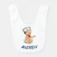 First of all, the shipping was fast. This bib was everything I had hoped for. It has such a smooth feel to it and is machine washable. The colors are vivid and the image quality is just as pictured on the web. Will be happy to give this as a New Baby gift !