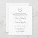 Traditional and classic black and white all in one budget wedding invitation featuring a wedding crest with your monogram inside of a wreath along with your names in a script / calligraphy. The back has your additional details, so no separate enclosure card is needed. This simple yet elegant invitation is great for a formal wedding.