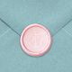 Before the wax hardens, gently and evenly press the wax seal stamp into the melted wax, ensuring it's centered.