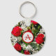 A modern monogram and nametag on photo of a bouquet of red roses on a key chain.