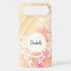 Monogram and Name White Floral on Pink & Peach iPhone Case