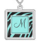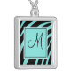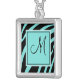 "M" is for Marvelous on this stylish aqua blue and black zebra print square monogrammed necklace. Change the letter to your own initial, or customize it however you want to, using the large orange "customize" button. If you need any help, or would like something changed, email niteowlstudio@gmail.com.