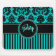 Monogram Aqua Black White Stripe Damask Mousepad