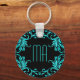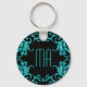 Monogram Aqua Blue Damask Keychain