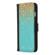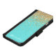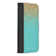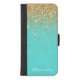 Monogram Aqua Blue Gold Glitter Confetti Girly iPhone Wallet Case